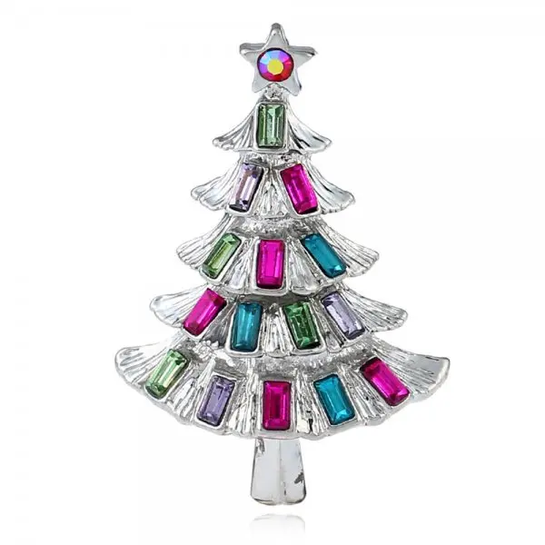 2024 Fashion Merry Christmas Tree Brooches Pins for Women Men Colorful Rhinestone Plant Xmas New Year Jewelry Party Wedding Gift