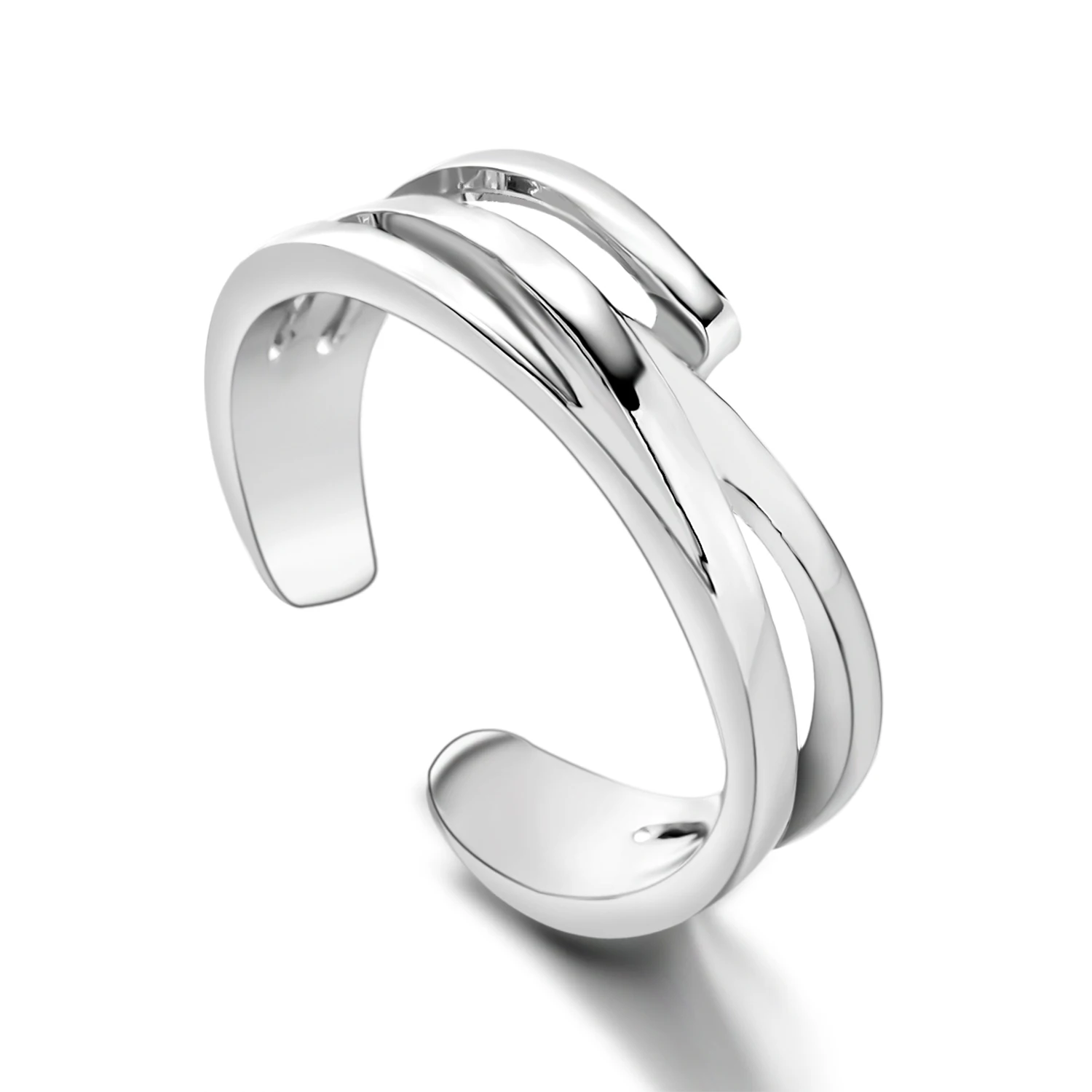 INS Fashion Silver Color Minimalist Irregular Twined Finger Rings Creative Geometric Punk Opening Rings for Women Girls Jewelry