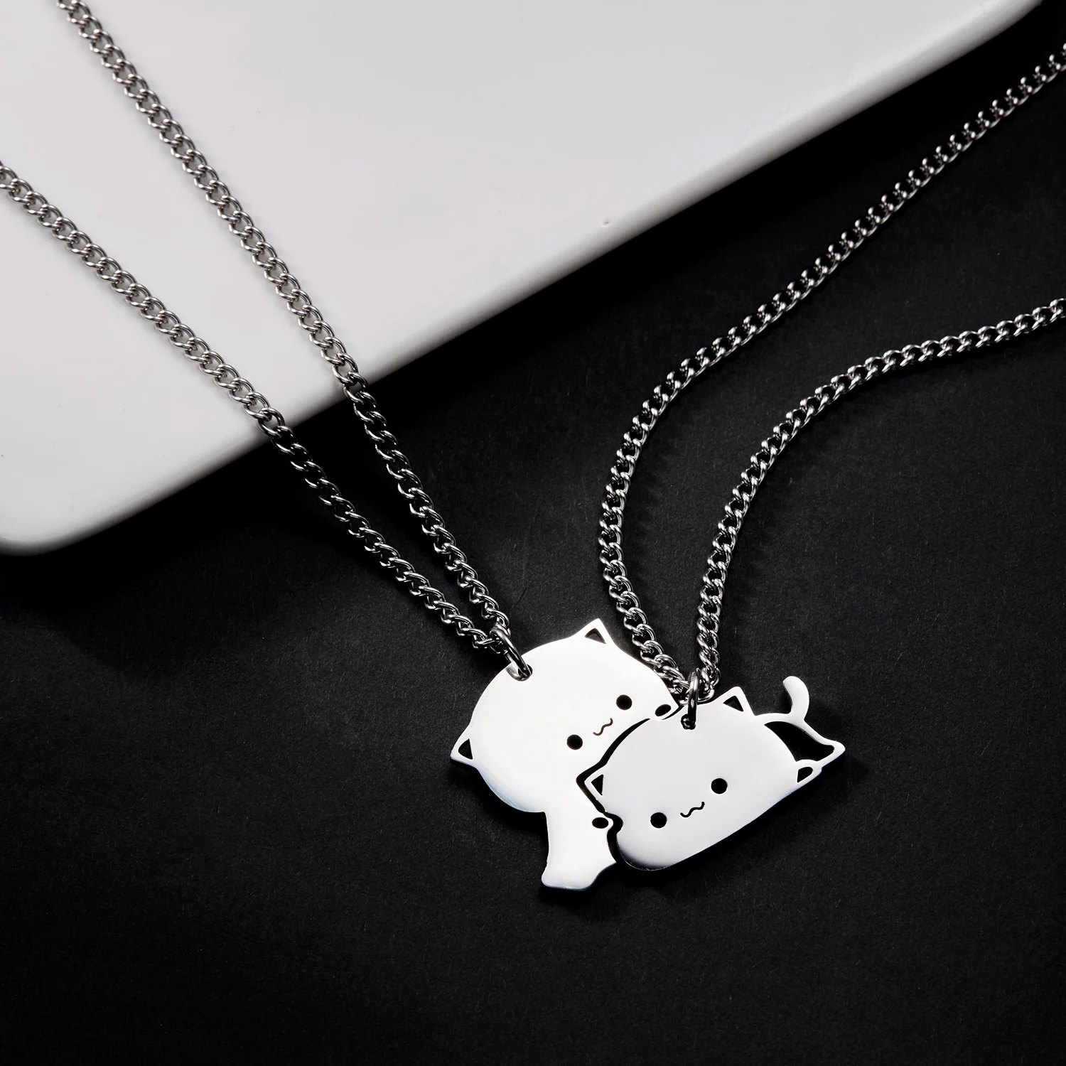 Kawaii Touching Embracing Cat Puzzle Couple Necklace Cute Cartoon Animal Kitten Pendant Necklace Romantic Jewelry Birthday Gifts