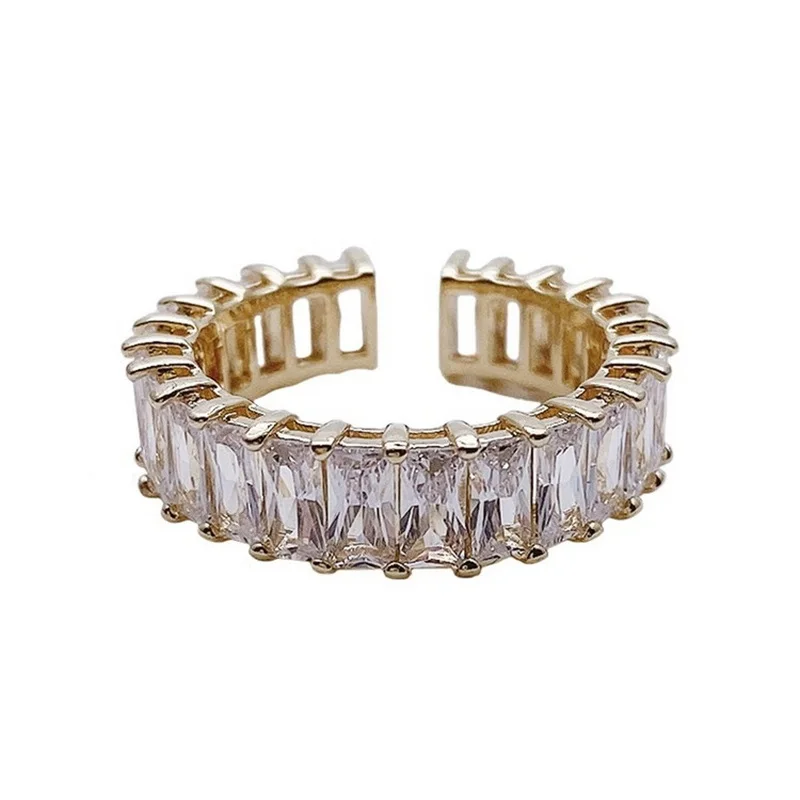 Elegant Square Rhinestone Zircon Open Adjustable Ring Luxury Gold Color Copper Metal Wedding Rings For Women Fashion Jewelry