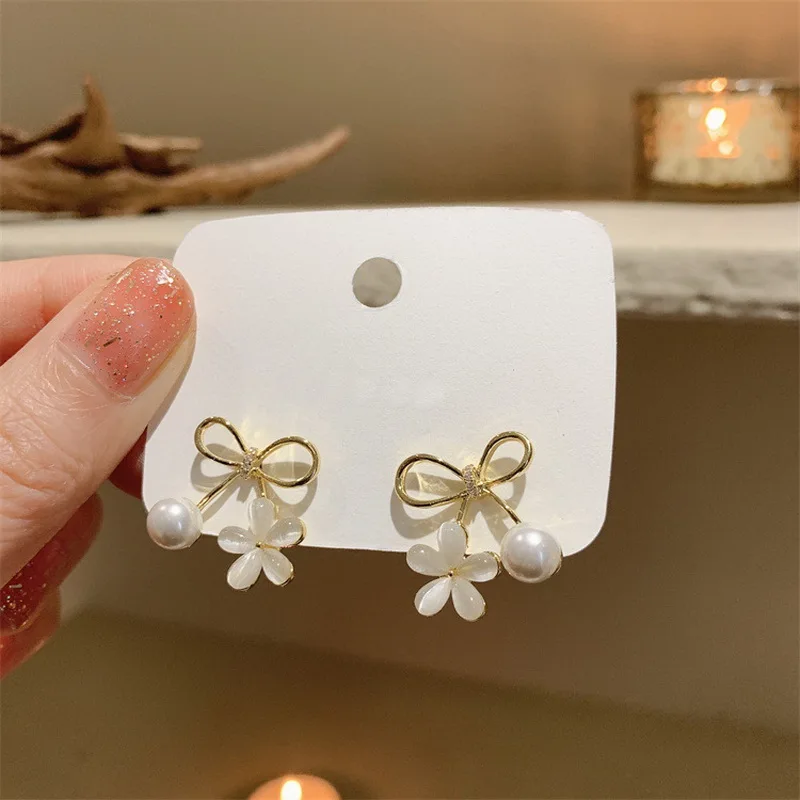 New Simple Flower Pearl Tassel Dangle Earrings for Women Girl Sweet Drop Earrings Korean Fashion 2022 Trendy Party Jewelry