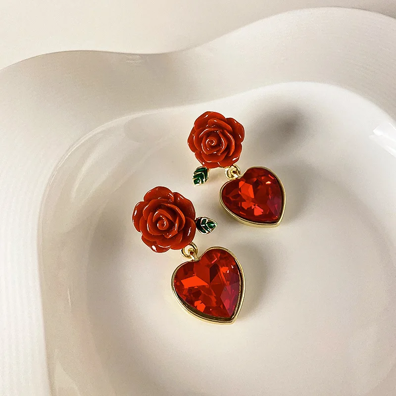 Heart Shape Pendant Drop Earrings for Woman Girls Women Rhinestone Crystal Zircon Statement Earrings Fashion Jewelry Gifts