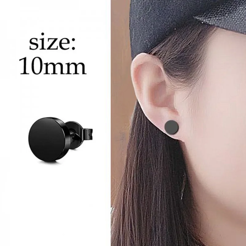 1 PC Men Punk Stainless Titanium Steel Stud Earrings Black Round Cross Simple Drop Hoop Ear Jewelry Hip Hop Street Boys Gifts