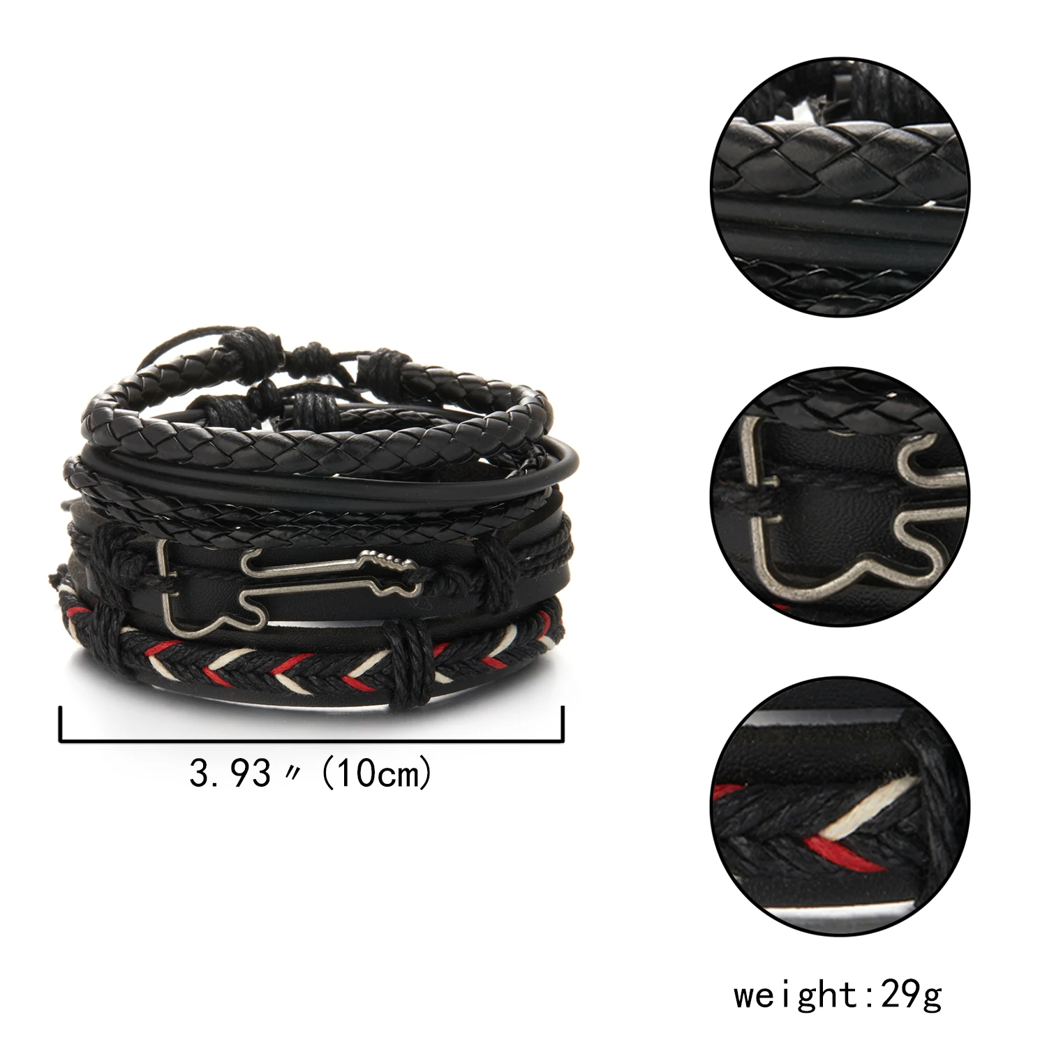 New Style Hand-woven Combination Bracelet Fashion Adjustable Punk Hip-Hop Men Leather Bracelet Set Luxury Jewelry Gift Wholesale