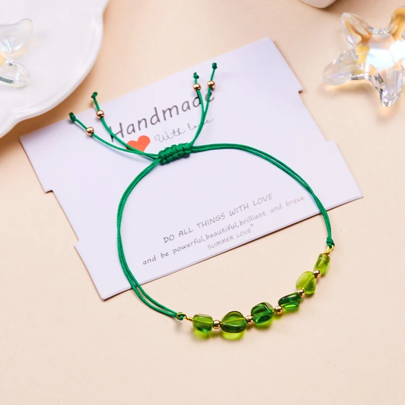 Cute Green Crystal Bead Bracelet for Women Trendy Lily Valley Flower Charm Elastic Adjustable Bracelet Wedding Birthday Jewelry