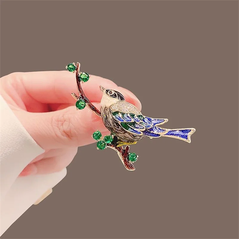 Fashion Enamel Magpie Bird Brooches for Women Men Cute Flower Plant Jewelry Rhinestone Shirt Dress Hat Gifts Accessories