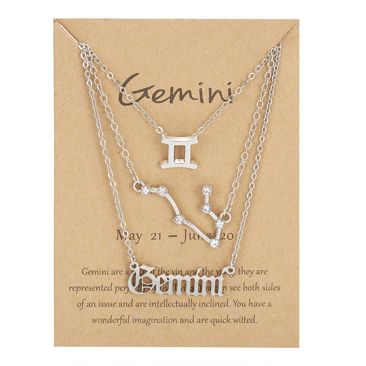 3Pcs/Set 12 Constellation Pendant Necklaces Couple Lover Fashion Cardboard Star Zodiac Sign Charm Pisces Necklace Jewelry Gifts