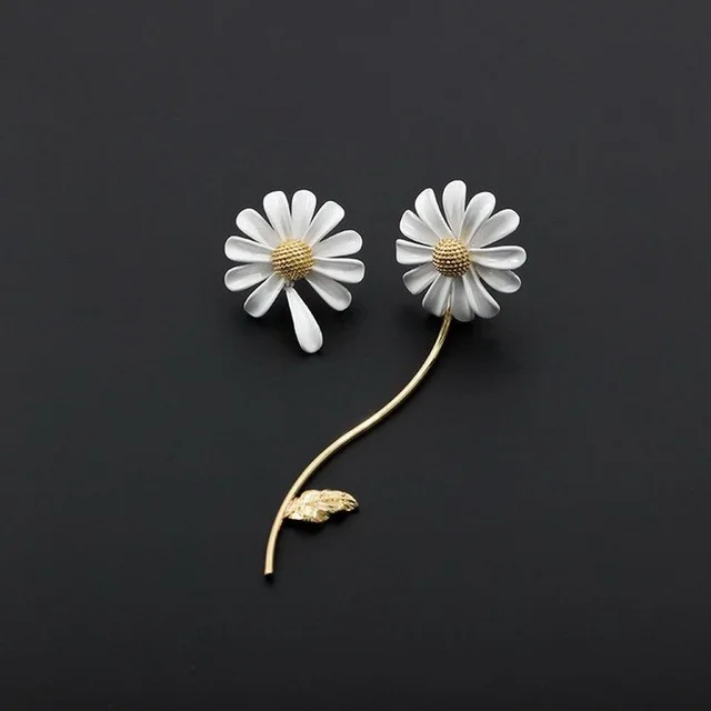 Korean Style Cute Small Daisy Flower Stud Earrings For Women Girls Sweet Statement Asymmetrical Earring Party Jewelry Gifts