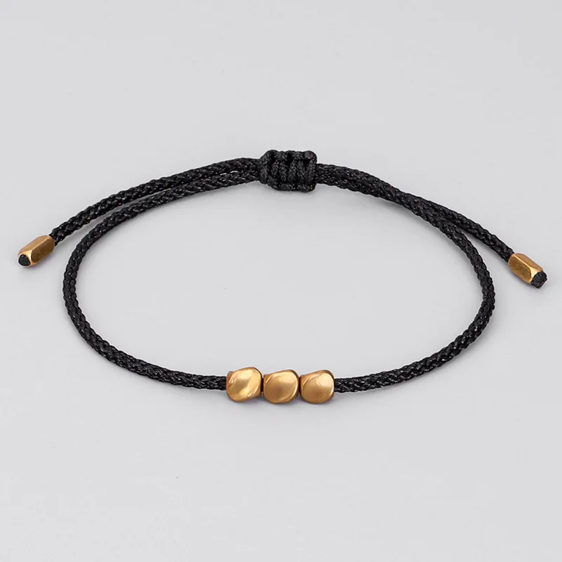 Tibetan Buddhist Creative Beaded Bracelets For Women Men Irregular Copper Beads Red Black Rope Pulling Handmade Braided Bracelet