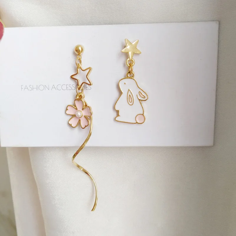 Fashion Cute Animal Kitten Leaf Dangle Earrings For Women Cat Rabbit Moon Flowers Asymmetrical Sweet Earring Girl Party Jewelry