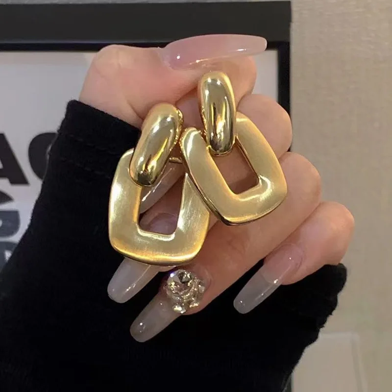 Vintage Trendy Gold Color Hollow Square Stud Earrings for Women Smooth Rust Proof Metal Earrings Bride Wedding Jewelry