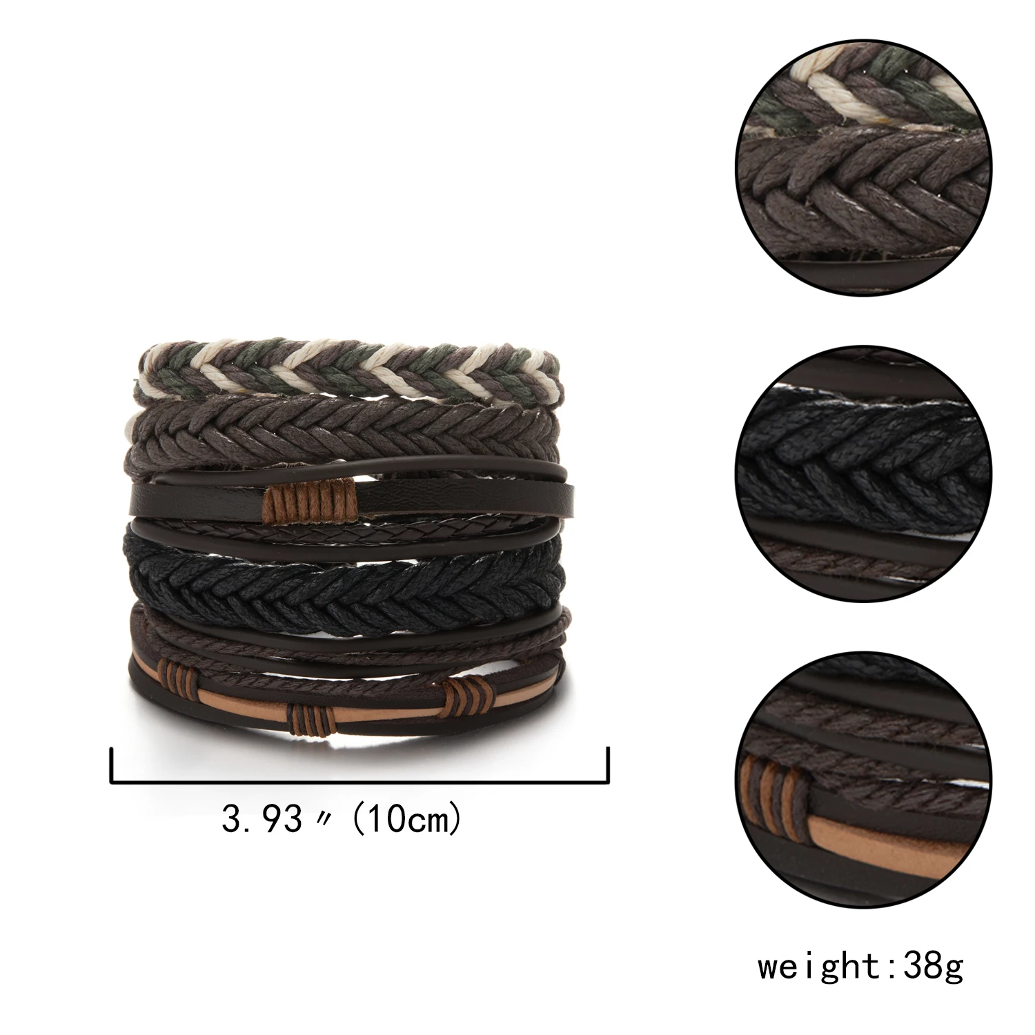 New Style Hand-woven Combination Bracelet Fashion Adjustable Punk Hip-Hop Men Leather Bracelet Set Luxury Jewelry Gift Wholesale
