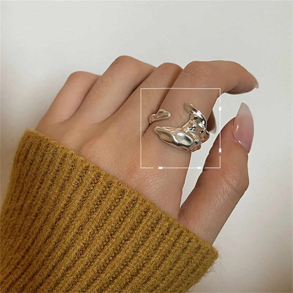 Minimalist Irregular Liquid Waterdrop Shaped Finger Rings For Women Kpop Creative Geometric Opening Ring Aesthetic Jewelry Gifts