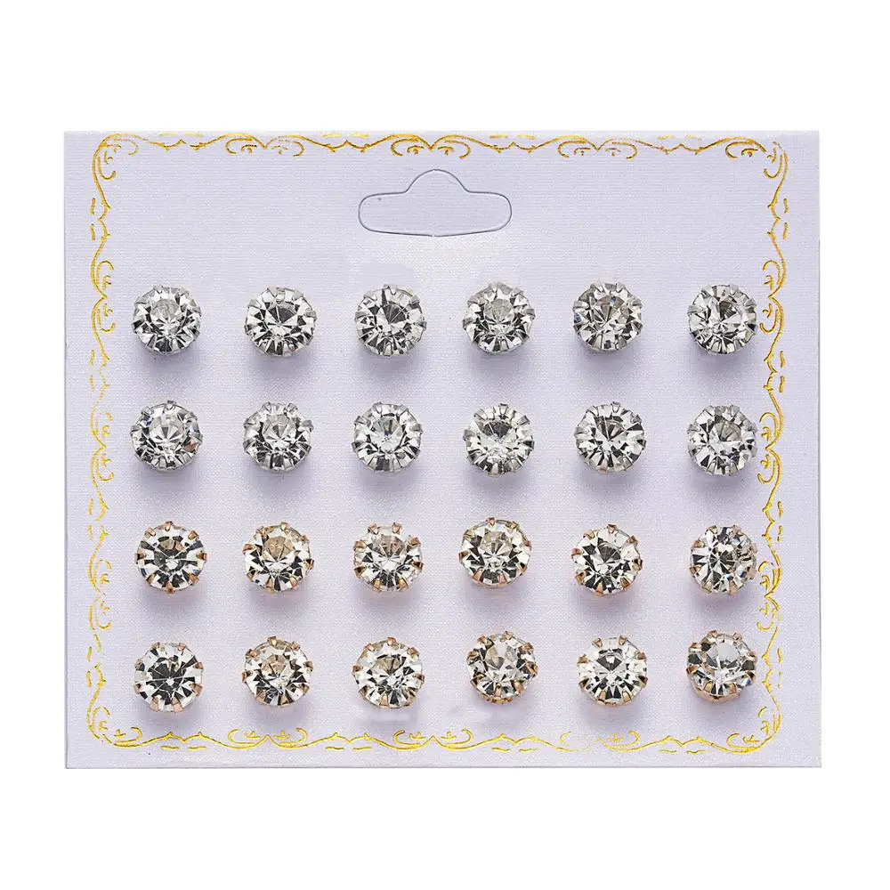 12 Pairs/set Classic Crystal Stud Earring Sets Women's Round Ball Metal Pearl Flower Earrings For Women Girl Gift Mixed Jewelry