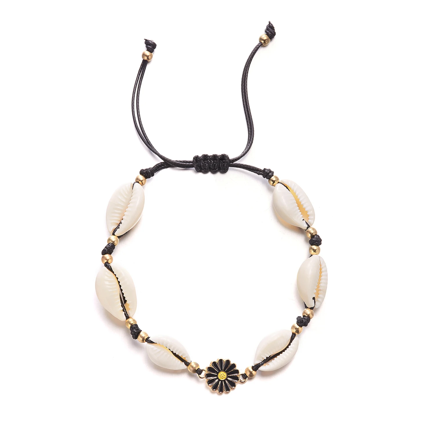 Cute Colorful Daisy Flower Natural Shell Bracelet for Women Bohemian Fashion Simple Conch Handmade Beaded Bracelet Beach Jewelry
