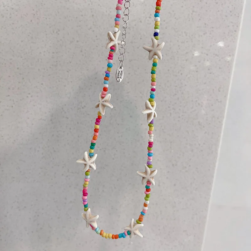 Bohemian Mixed Color Rice Beads Chain Choker Summer Fashion Beach Necklace for Women Boho Starfish Choker Necklace Jewelry
