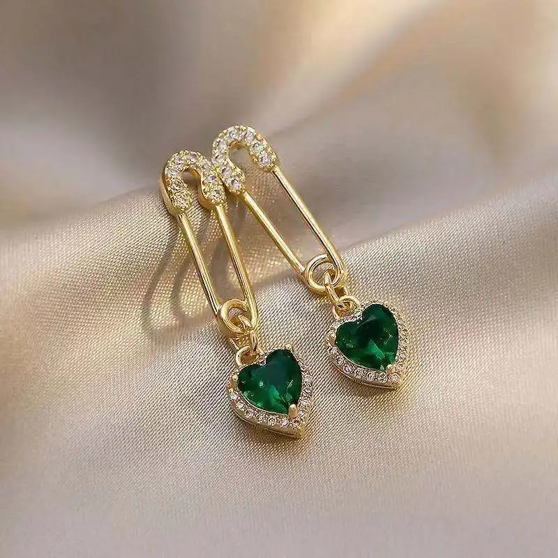 Vintage Fashion Green Square Crystal Dangle Earrings Simple Long Tassel Drop Earrings Daily Party Wedding Jewelry For Women
