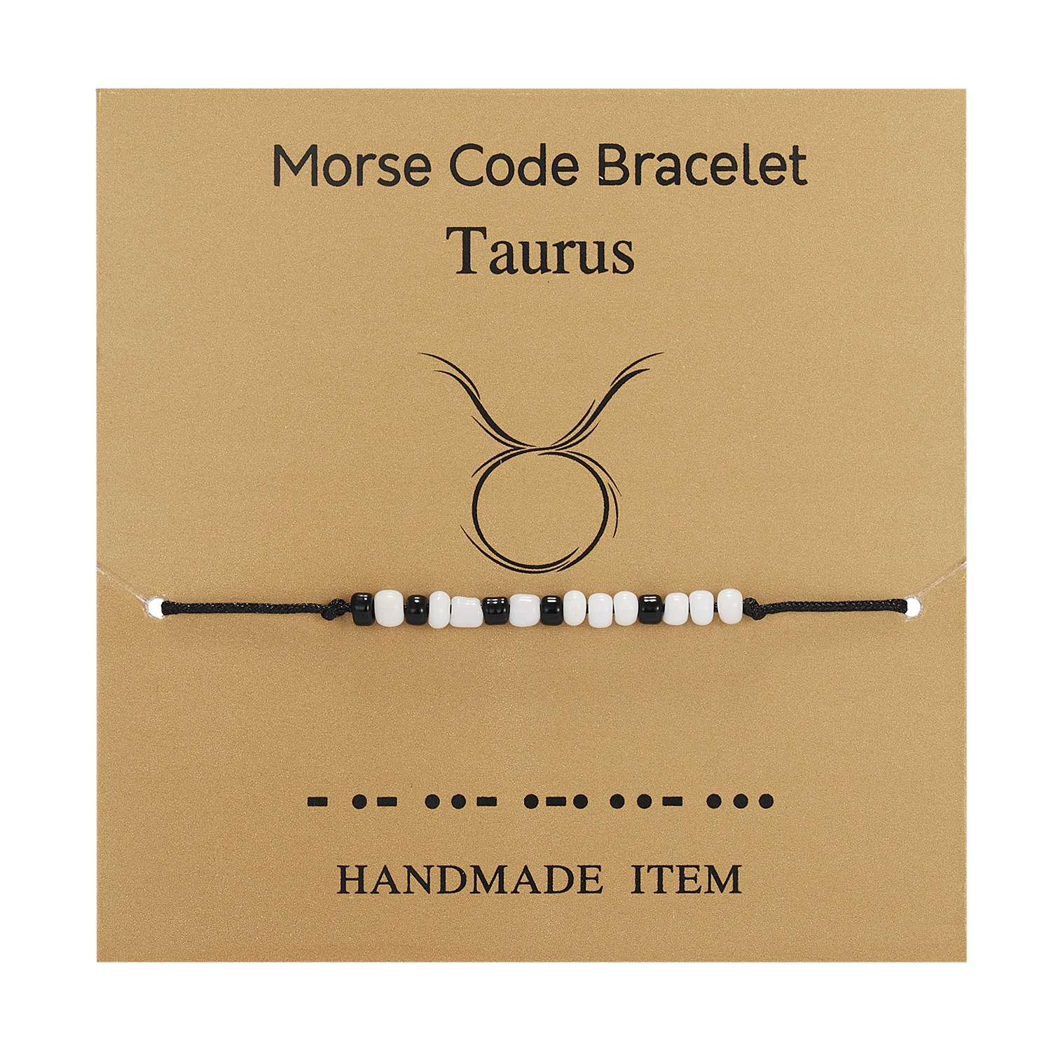 New Charm Bracelet For Women Men Twelve Constellation Zodiac Black White Rice Beads Adjustable Rope Chain Bracelet Aquarius Leo