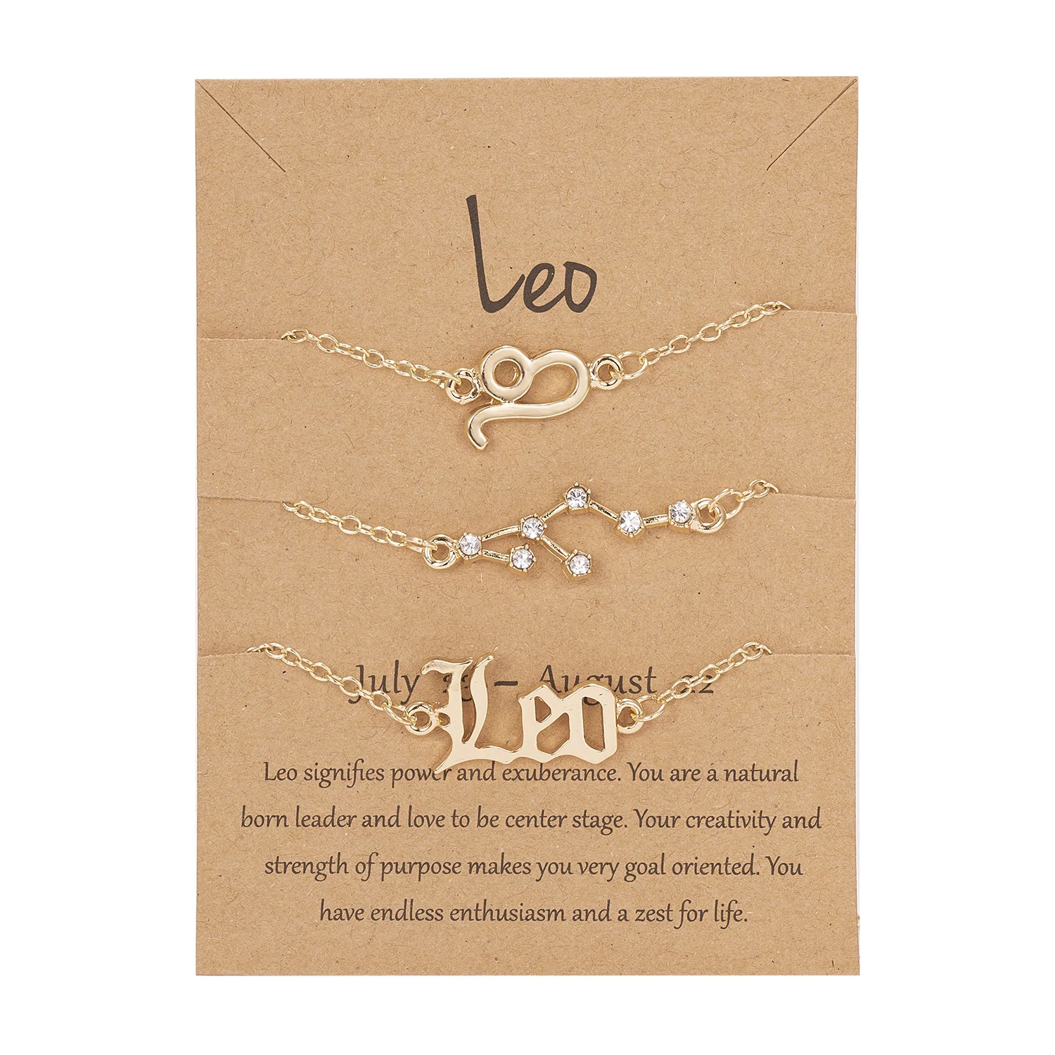 3Pcs/Set Symbols Starry Sky Ancient Letters Twelve Constellation Bracelets For Women Girls Crystal Bracelet Adjustable Jewelry