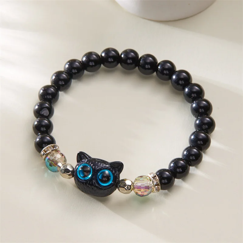 Cute Big Eye Cat Luminous Bracelets For Women Men Glow In The Dark Cartoon Animal Beaded Bracelet Friendship Couple Jewelry Gift