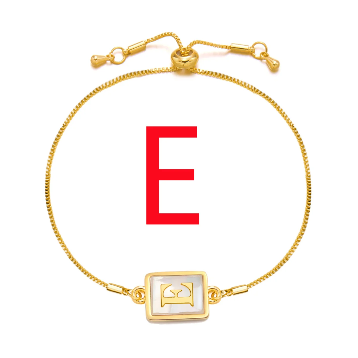 26 English Initial Letter Luminous Imitation Shell Bracelet For Women A-Z Alphabet Square Glow In Dark Bracelet Birthday Jewelry
