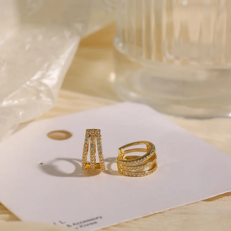 Korean Trendy Gold Color Double Triple Stacked Hoop Earrings For Women Full Zircon Light Luxury Accessories Wedding Jewelry