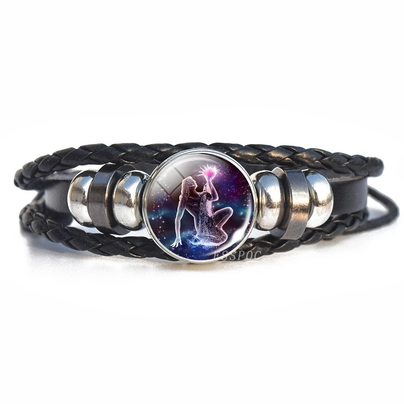 12 Constellation Luminous Bracelet For Men Glow In The Dark Multilayer Leather Braided Rope Bracelets Party Personality Jewelry