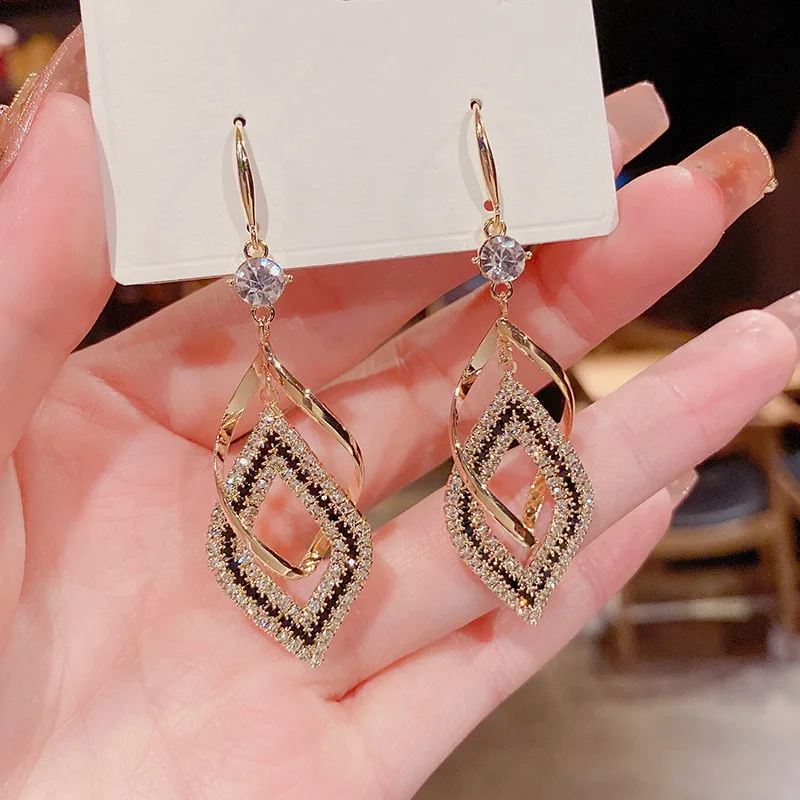 Fashion Geometric Pendant Earrings Rhombus Zirconia For Women Heart Butterfly Long Tassel Drop Earrings Jewelry Accessories Gift