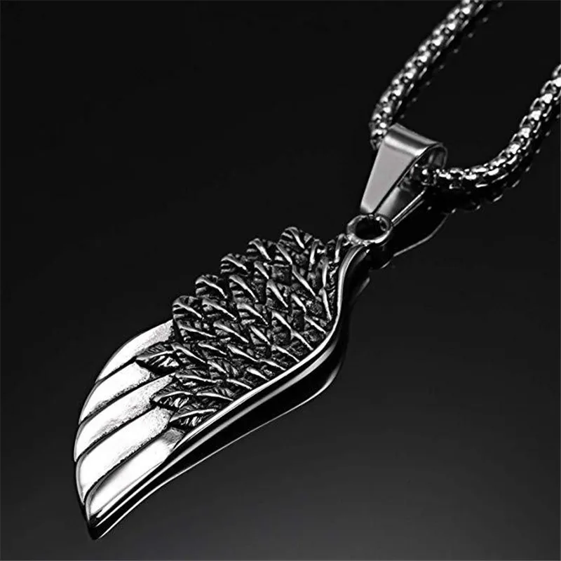 Rinhoo Stainless Steel Men's Vintage Punk Rock Wings Feathers Pendant Necklace Fashion Hip Hop Necklaces Jewelry Gifts For Men