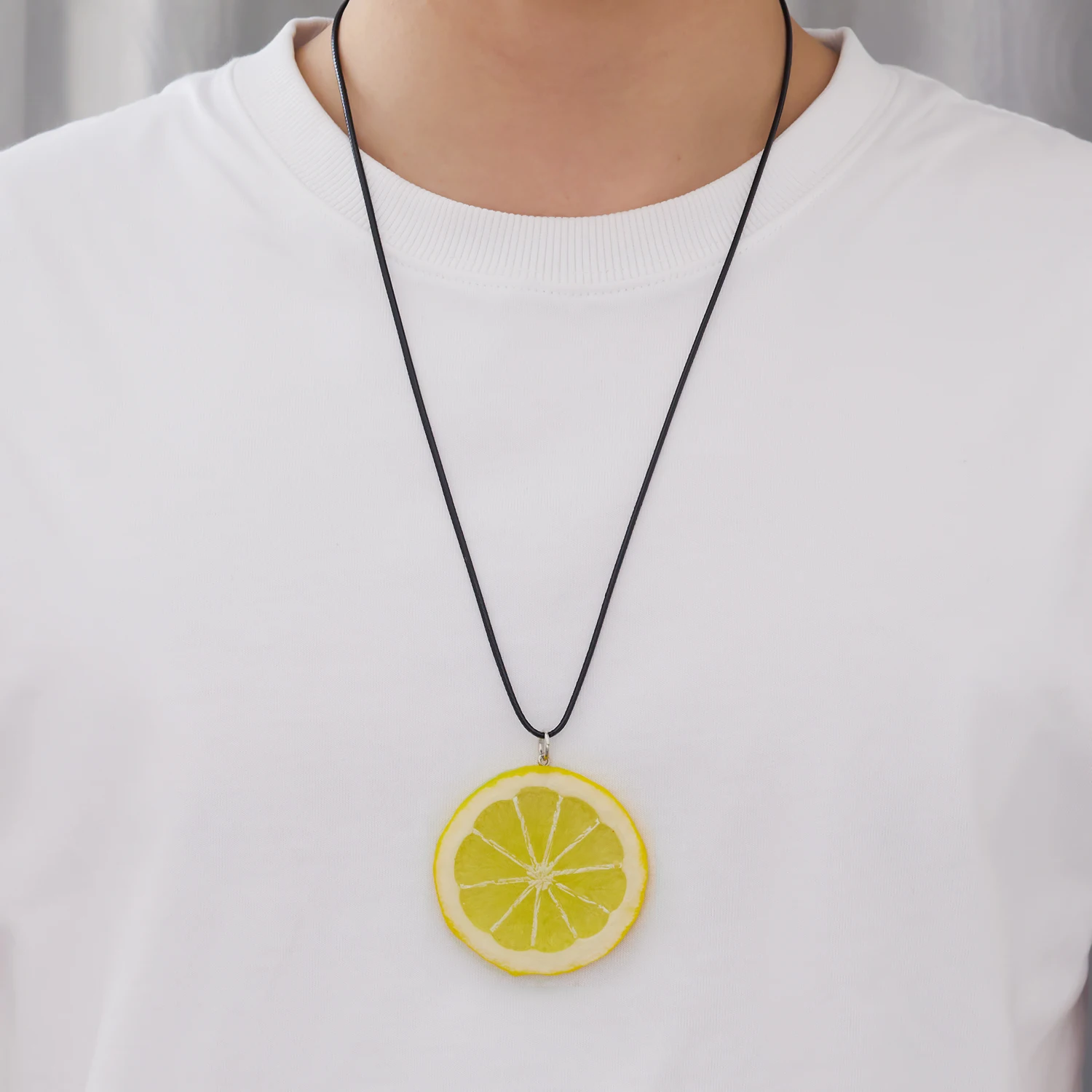 Cute Orange Lemon Fruit Pendant Necklace Vacation Jewelry For Women Men Leather Rope Rope Summer Fashion Neck Accessories