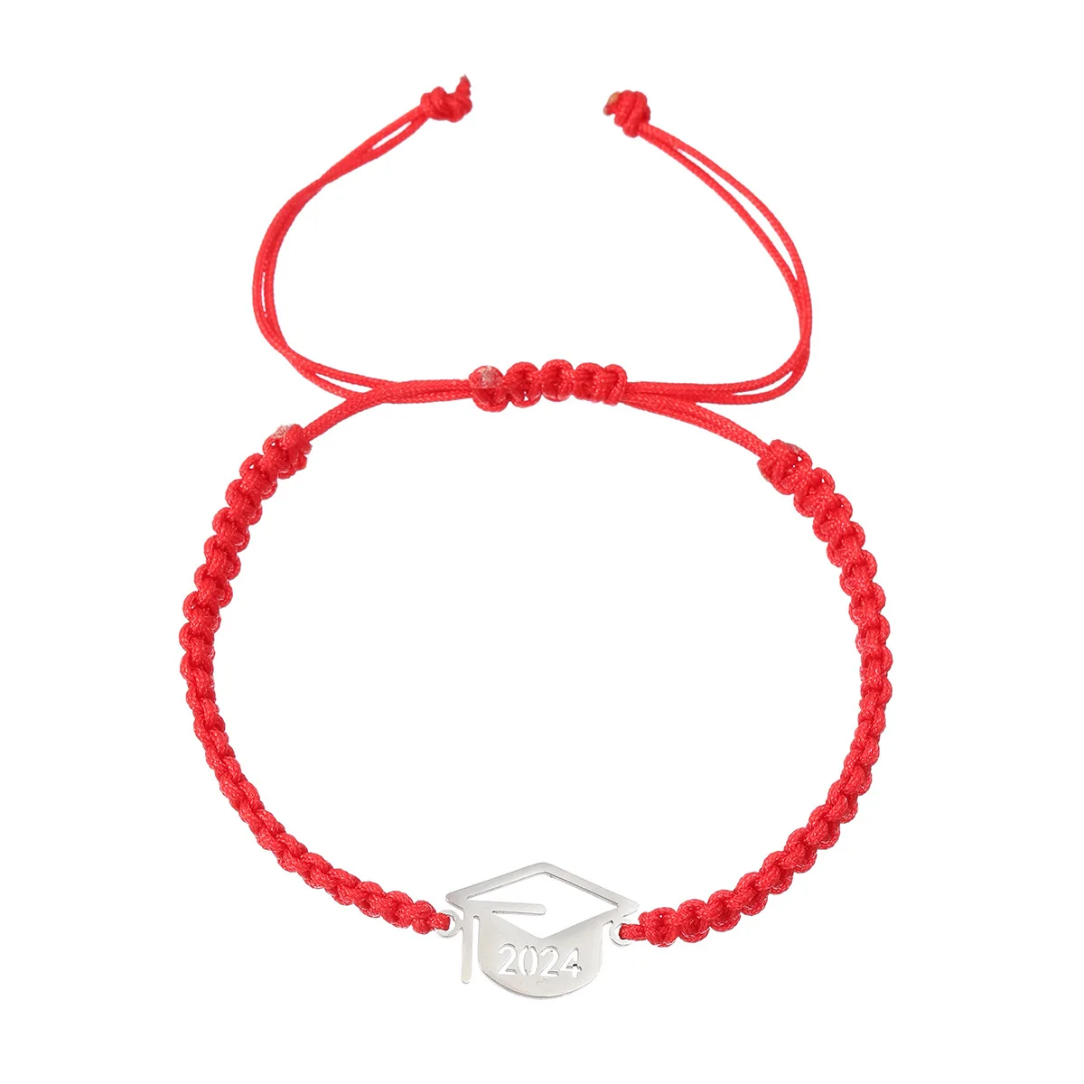Inspirational 2024 Graduation Doctoral Cap Rope Bracelet for Women Men Charm Handmade Woven String Jewelry Heart Student Gifts