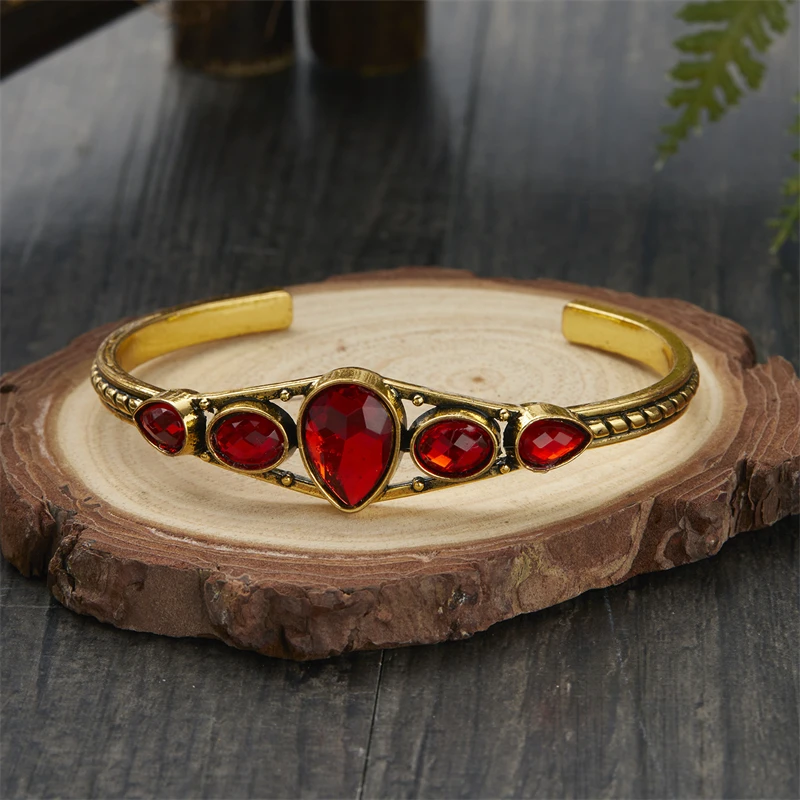 Vintage Natural Stone Feather Metal Bracelet For Women Men Fashion Rhinestone Open Adjustable Wide Bracelet Ethnic Jewelry Gift