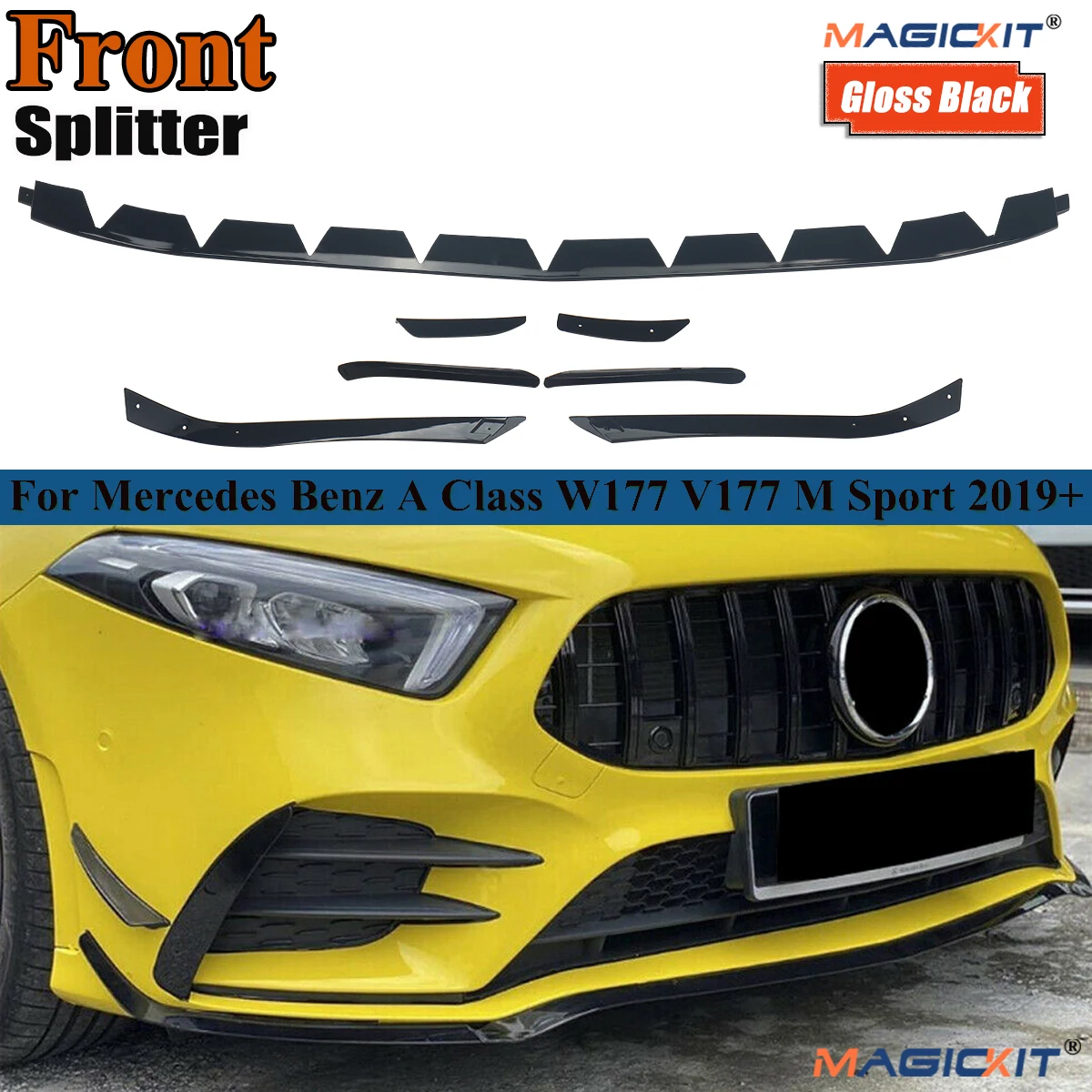 Car Front Bumper Lip Chin Spoiler Splitter For Mercedes Benz A Class W177 V177 A180 A200 A250 Sport Sedan 2019 UP Canard Trim