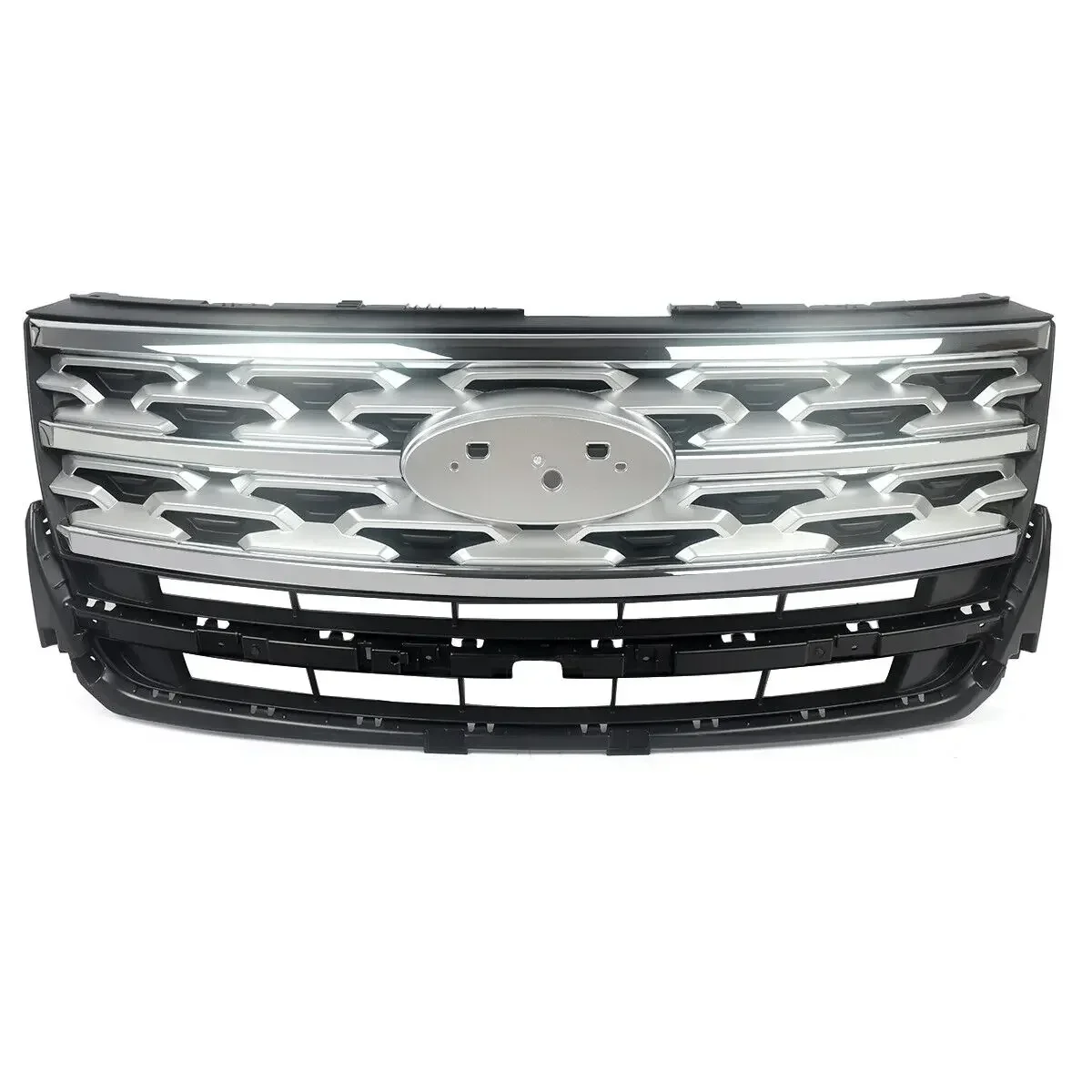For 2018-2019 Ford Explorer Sport Front Bumper Upper Grille Grill Silver Coated CAR Accessories Silver+Black