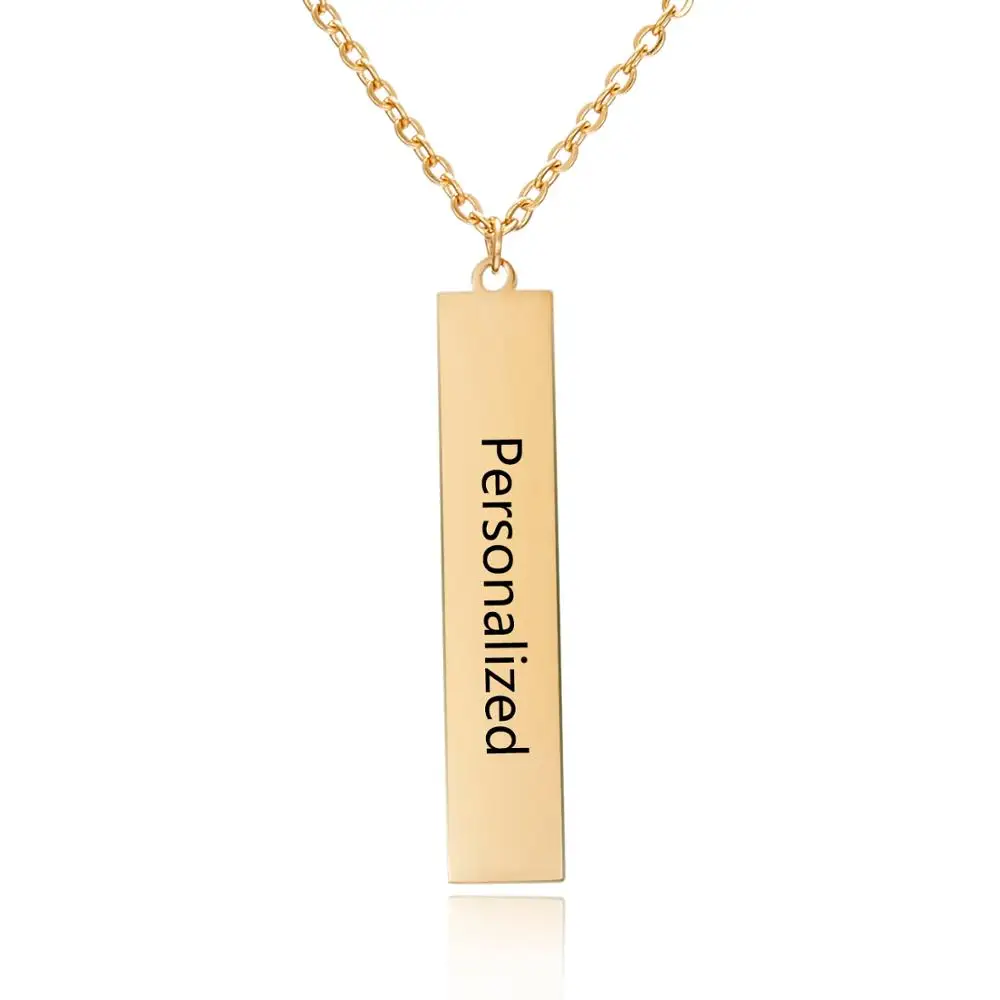 Rinhoo Four Sides Engraving Personalized Square Bar Custom Name Necklace Stainless Steel Pendant For Women/Men Birthday Gift