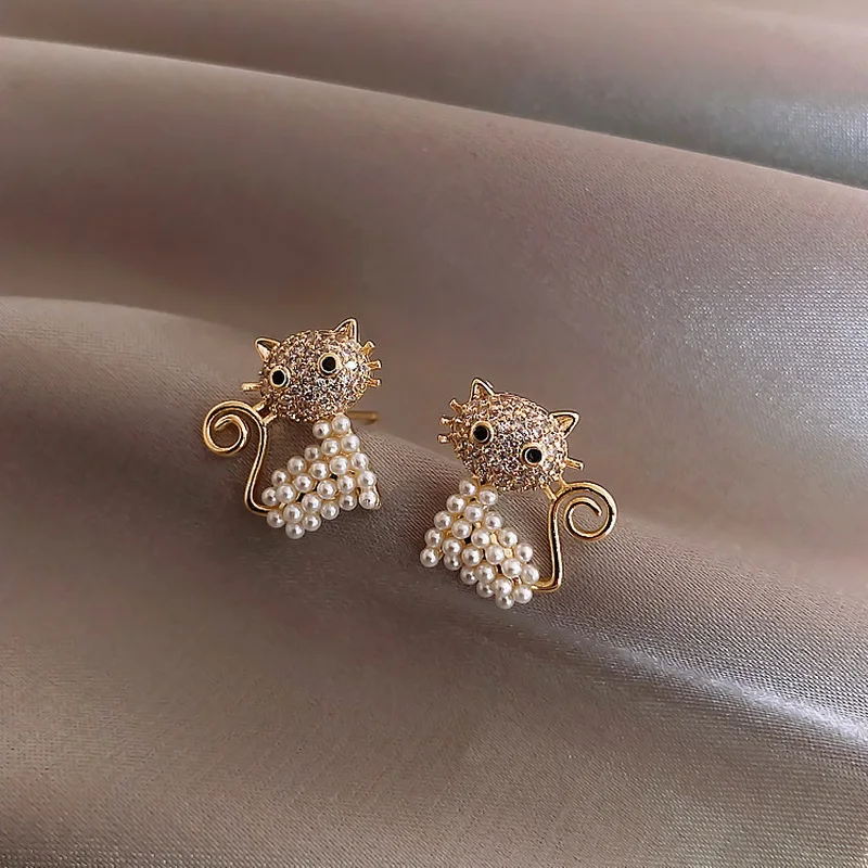 New Cute Animal Stud Earrings for Women Crystal Rhinestone Horse Kitten Earring Temperament Girls Birthday Party Jewelry
