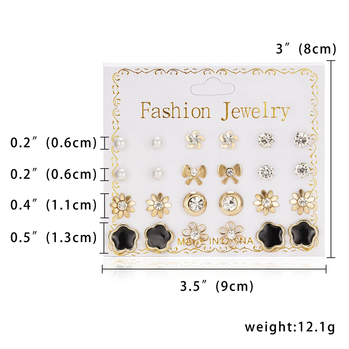 12 Pairs/set Stud Earrings Set With Card Transparent Zircon Balls Love Flowers Earrings Women Imulated Pearl Earrings Jewelry