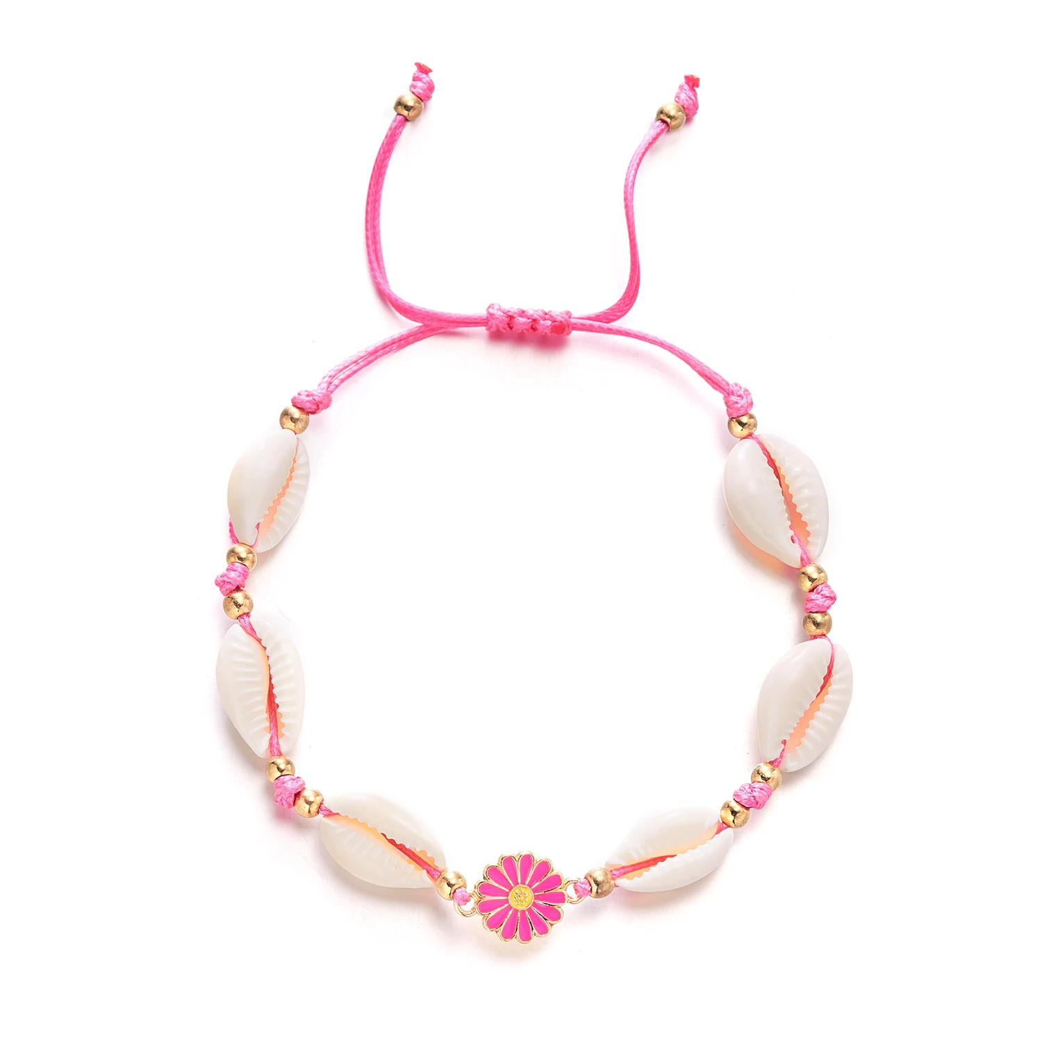 Cute Colorful Daisy Flower Natural Shell Bracelet for Women Bohemian Fashion Simple Conch Handmade Beaded Bracelet Beach Jewelry