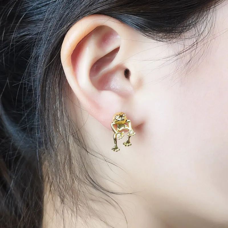 Funny Green Frog Stud Earrings for Women Creative Exaggerated Cute Cartoon Metal Dangle Drop Piercing Jewelry Party Ear Gifts