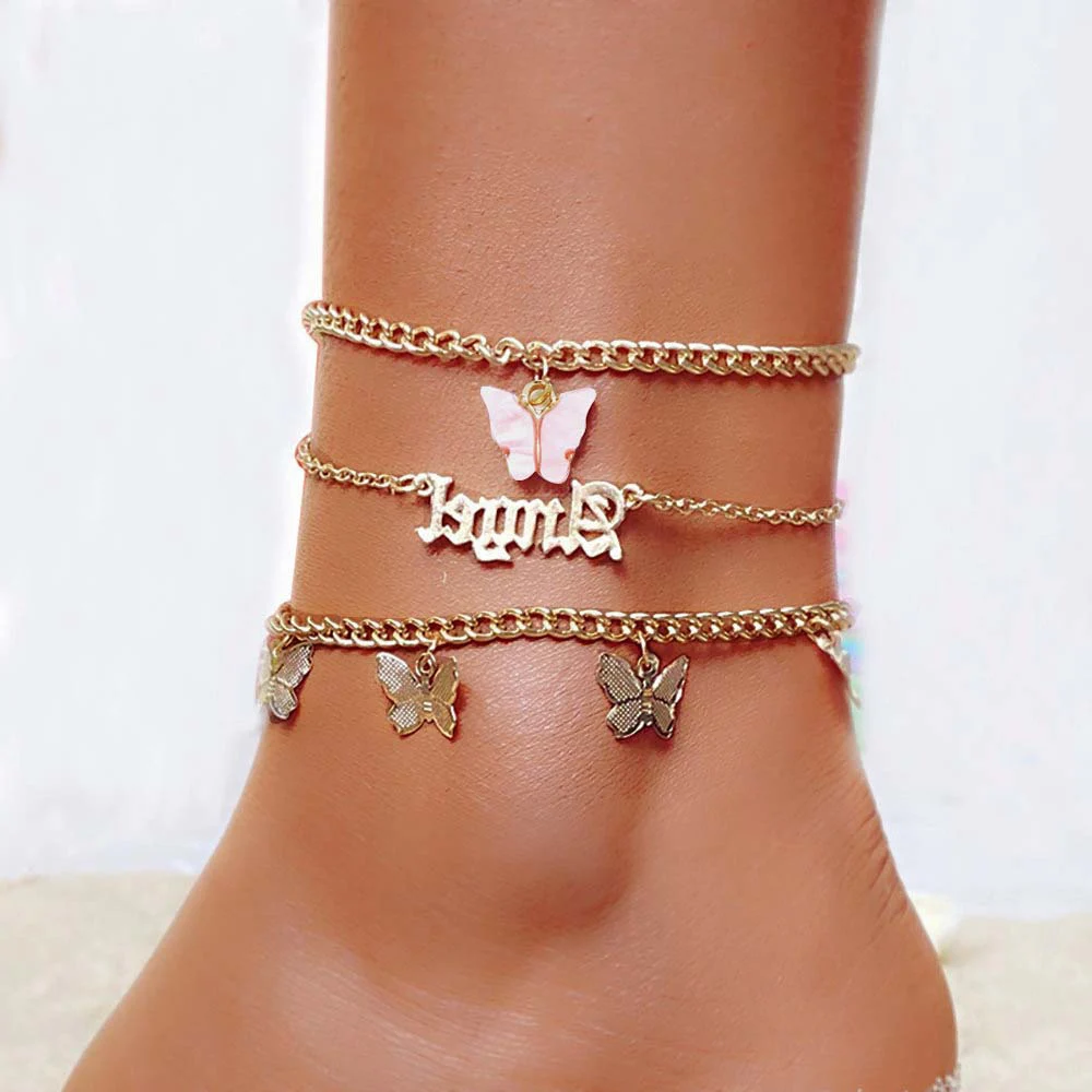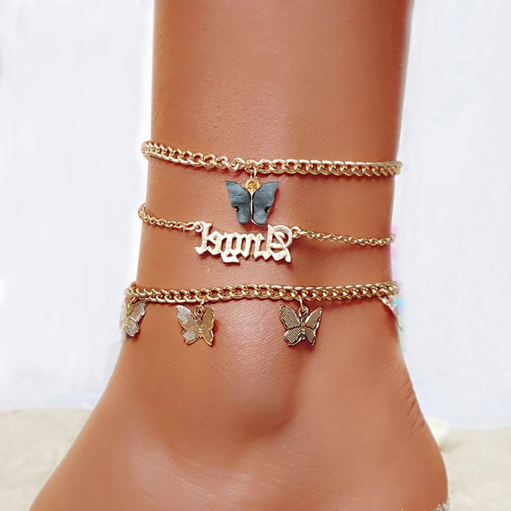 Lucky Turkish Colourful Evil Eye Beaded Anklets For Women Palm Butterfly Pendant Metal Chain Ankle Bracelet Beach Party Jewelry