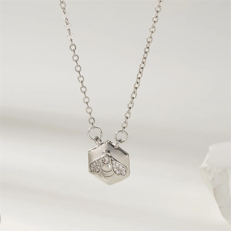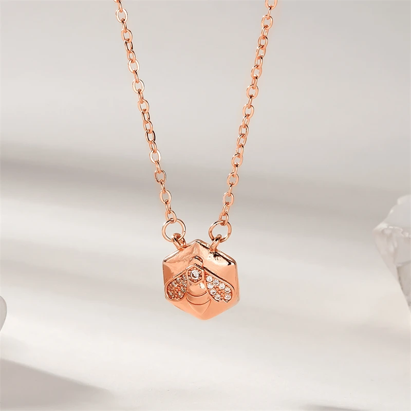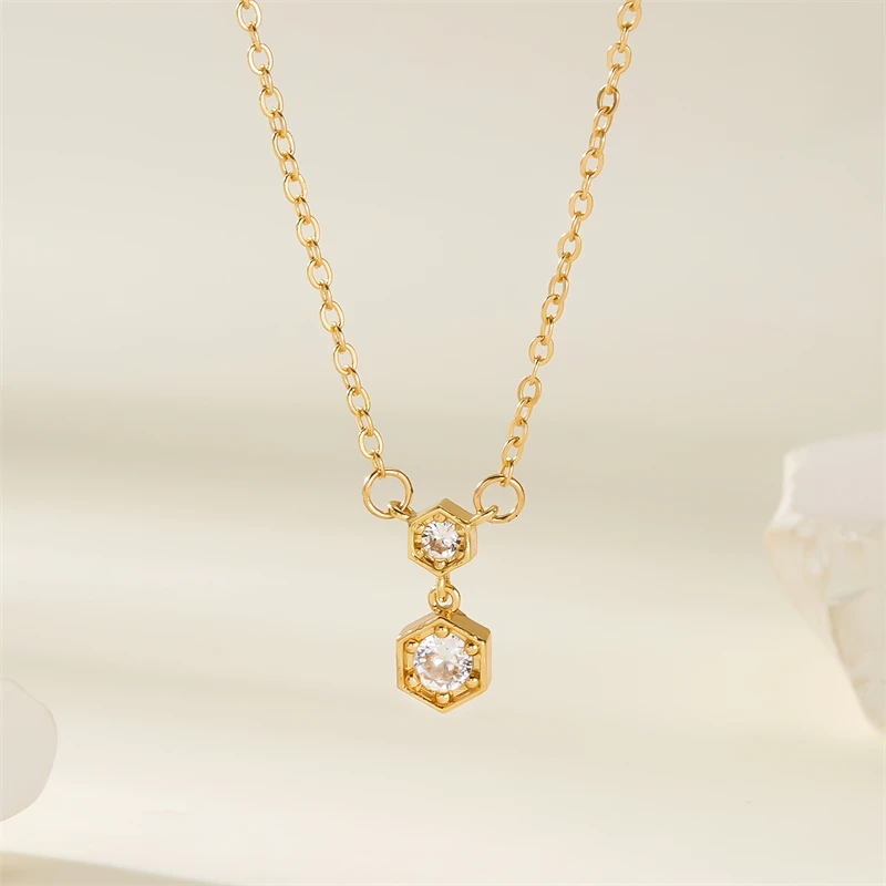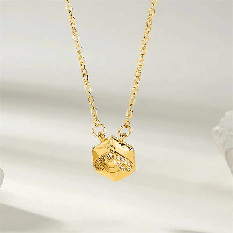Fashion Geometric Necklace for Women Exquisite Inlaid Zircon Honeycomb Beehive Pendant Necklace Everyday Jewelry Accessories
