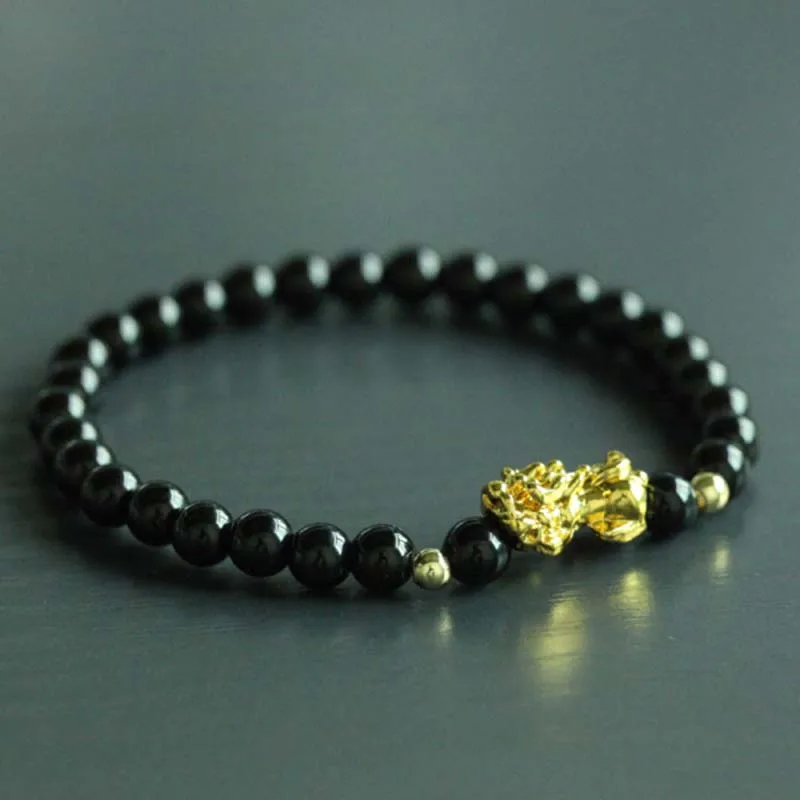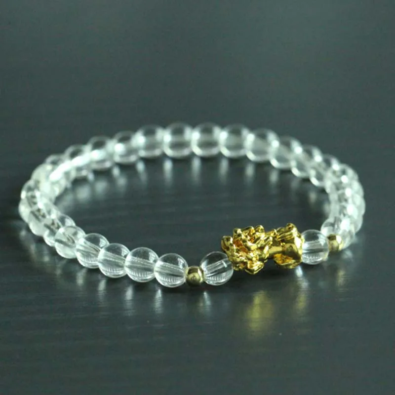 6mm Crystal Stone Beaded Bracelet for Women Men Lucky Gold Color Pixiu Pendant Elastic Adjustable Bracelet Party Jewelry Gift