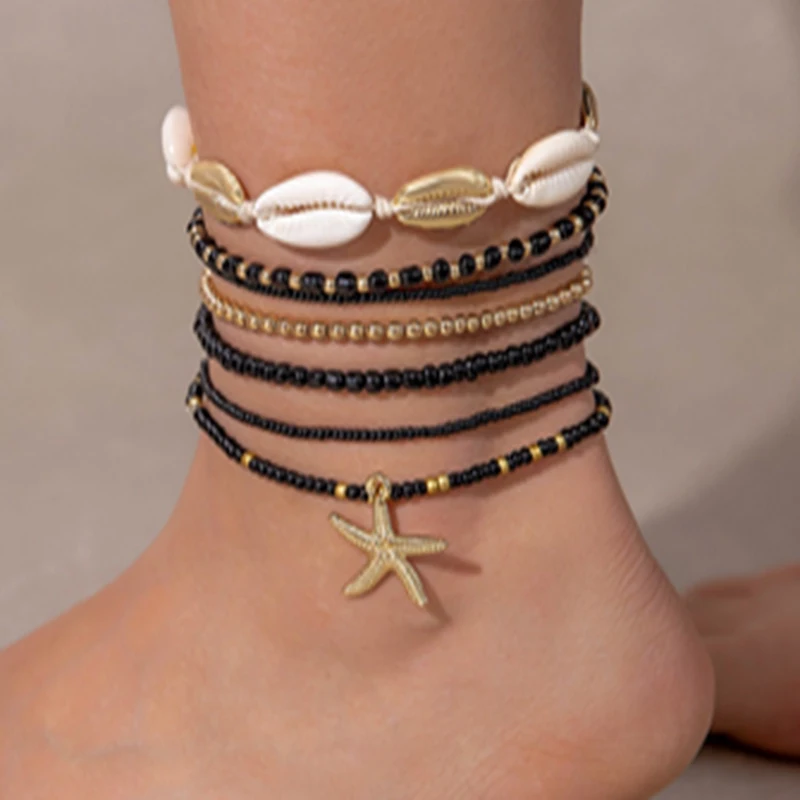 Simple Heart Chain Bracelet Anklet for Women Fashion Imitation Pearl Star Adjustable Bracelet Y2K Aesthetic Jewelry Wholesale