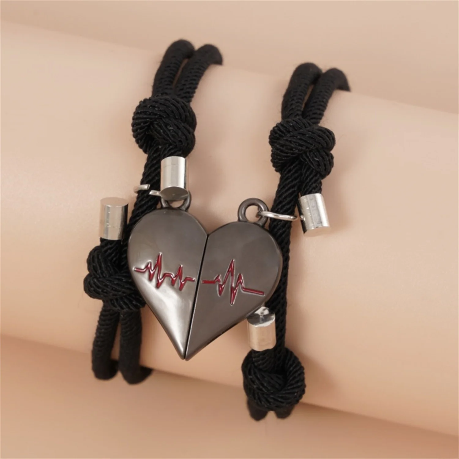 2Pcs/set Magnet Wishing Stone Love Heart Couple Bracelets for Women Men Red Black Rope Bracelet Jewelry Valentine's Day Gifts