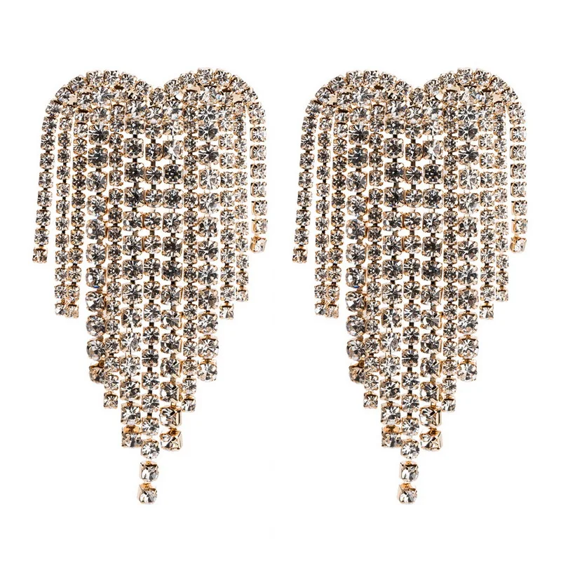 Geometric Heart Claw Chain Tassel Rhinestone Drop Earrings for Women Dinner Party Wedding Birthday Anniversary Jewelry Gifts