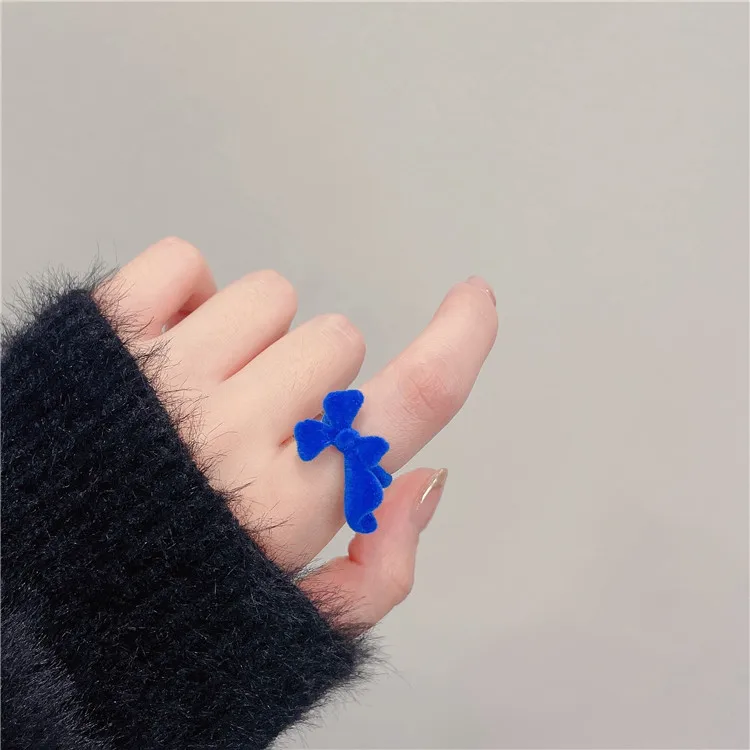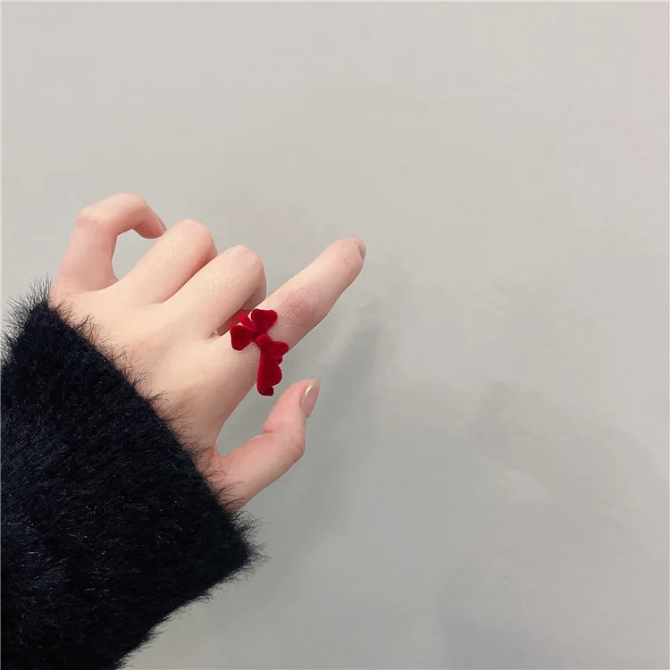 Flocking Rabbit Finger Ring Adjustable Sweet Cute Butterfly Knot Rings Girl Cartoon Index Ring Handmade Plush Heart Jewelry Gift