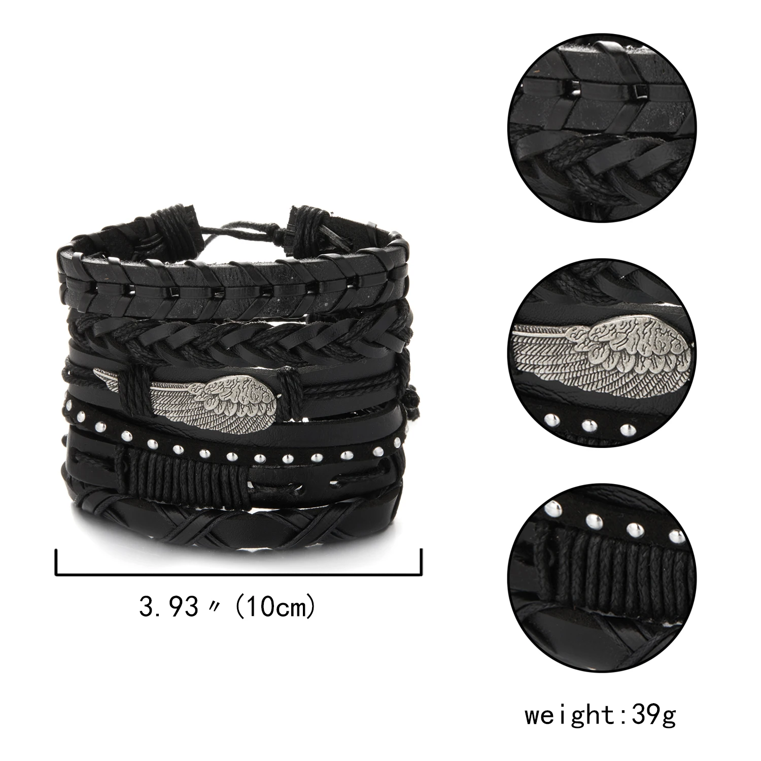 Men Leather Bracelet Set Fashion Punk Hip-Hop Handmade Braided Tai Chi Infinity Charm Bracelet Adjustable Jewelry Accessories