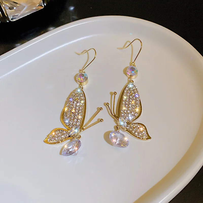 2021 New Design Butterfly Crystal Earrings For Women Girl Elegant Exquisite Stud Earrings Jewelry Wedding Party Daily Wearing