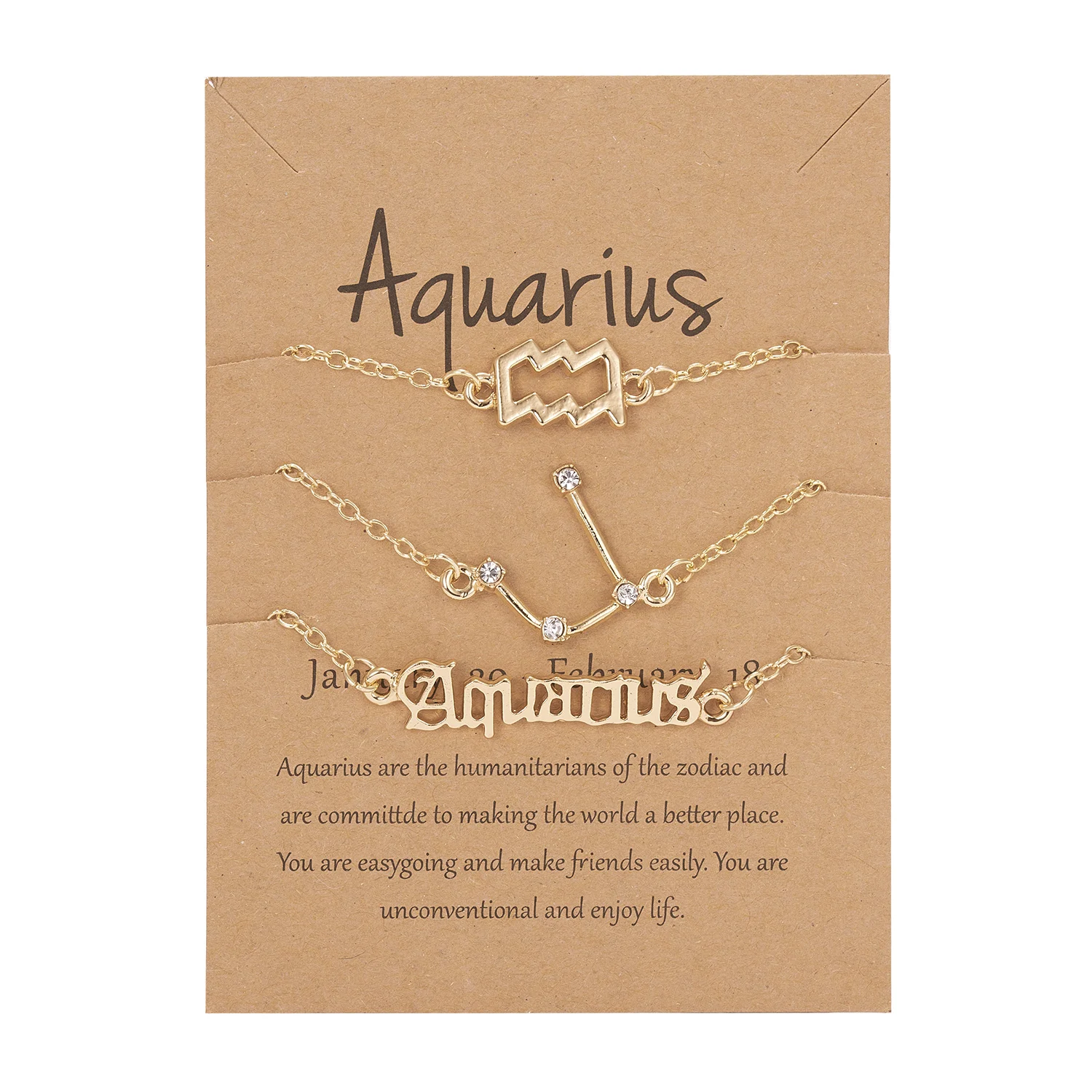 3 PCS/Set Zodiac Sign Chain Bracelet for Women Couple 12 Constellation Gold Color Star Rhinestone Birthday Jewelry Aries Gifts