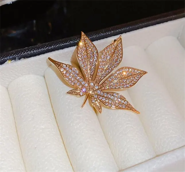 High-end Luxury Crystal Maple Leaf Brooch For Women Elegant Exquisite Rhinestone Tulip Flower Brooch Pin Banquet Wedding Jewelry
